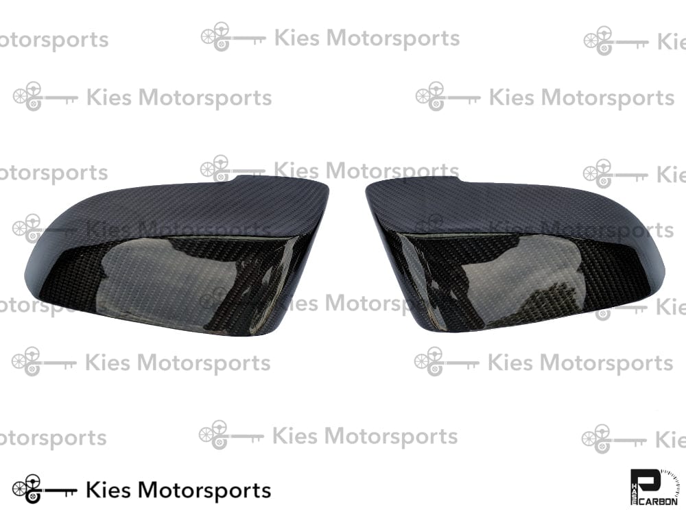 These Kies Carbon 5 series carbon fiber mirror cover replacements are direct plug-and-play for the stock mirror covers specifically for the LCI BMW 5 series (2013-2016 year models). The pre-LCI models use a different mirror cap, so if you are looking for that version, you can purchase them here.