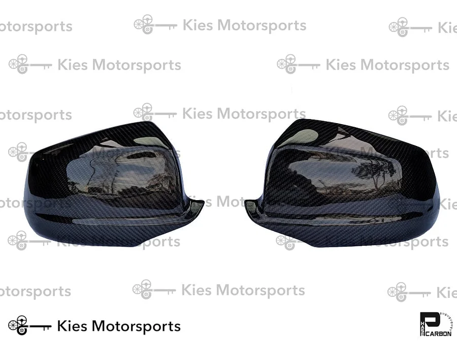 These Kies Carbon 5 series carbon fiber mirror cover replacements are direct plug-and-play for the stock mirror covers specifically for the pre-LCI BMW 5 series (2010-2013 year models).
