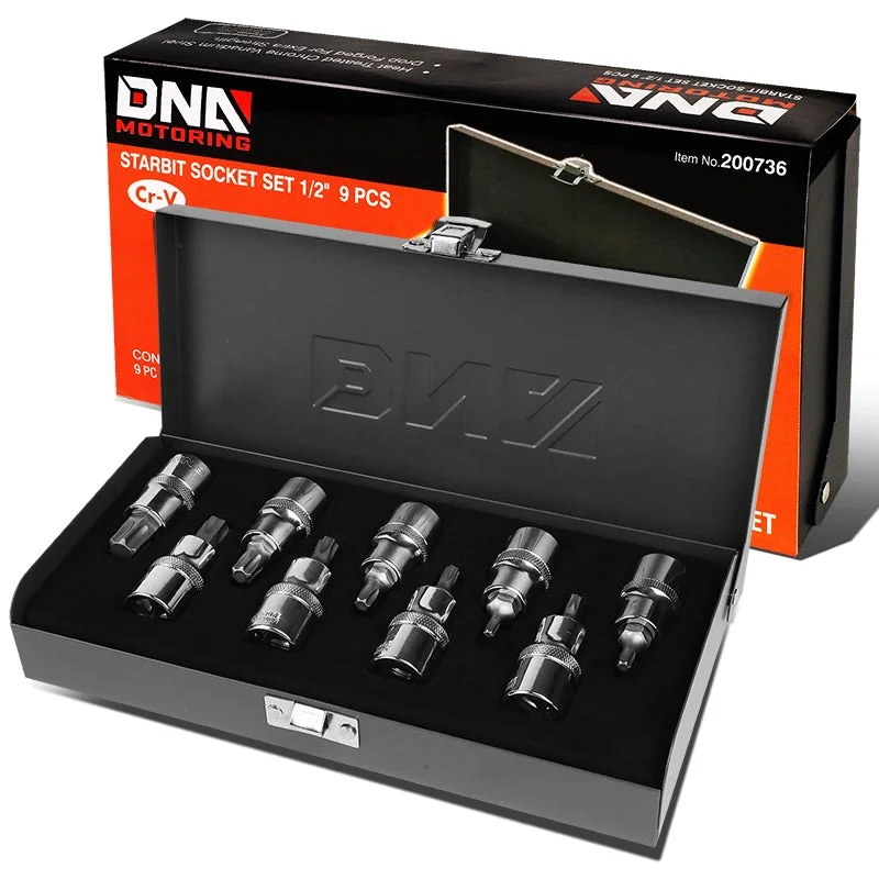 Specifics and Features:1/2" Drive 9PC Internal Torx Socket Set